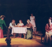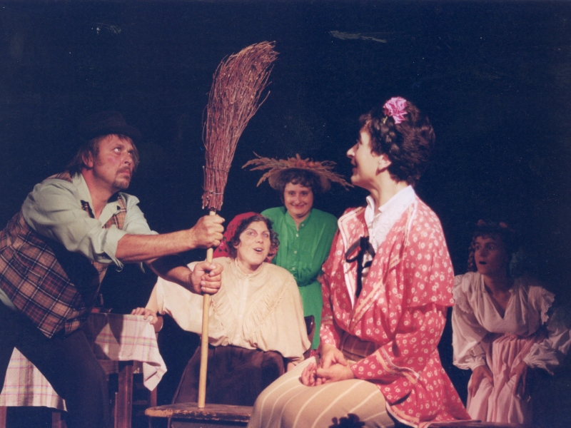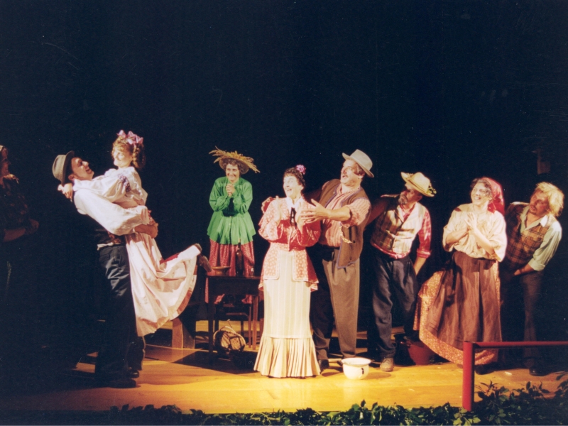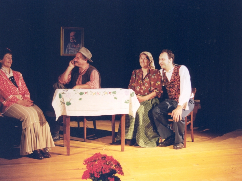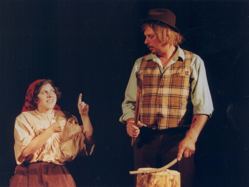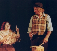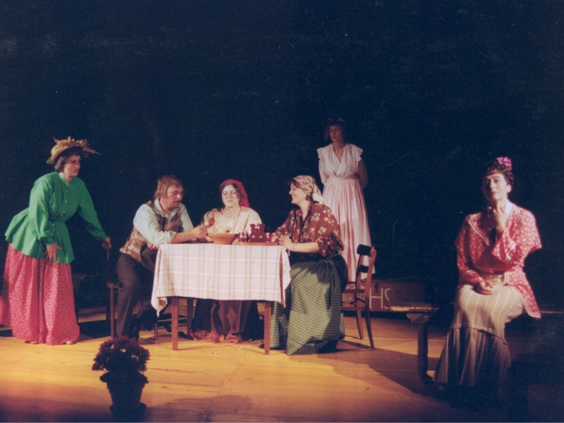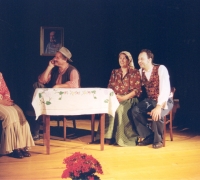 BRANKO RENER (Kmet Melhar) – GROZDANA ŠVARA (Melharica, njegova žena) – DAMJANA BANDELJ (Liza, njuna starejša hči) – SILVESTRA GRIŽNIK – KAČIČ (Minica, njuna mlajša hči) – ERNA TROBEC (Teta Andrejka) – PAVEL TROBEC (Močeradnikov Miha) – MILIVOJ COLJA (Napaljon, bogat kmet) – DARKO KAČIČ (Nace, njegov sin) – BOJANA FURLAN (Potovka Neža) – BRANKA GUŠTIN (Mlinarjeva dekla) – SIMON COLJA (harmonikar)